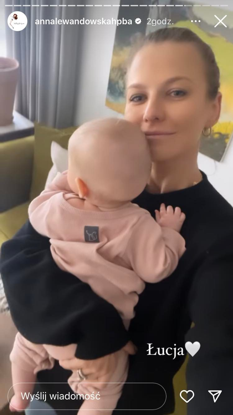 Na jednym z ujęć Lewandowska trzyma na rękach małą pociechę. Ubrana w różowy zestaw dziewczynka ma na imię Łucja. Jak widzimy na kolejnym nagraniu powoli szykuje się do spania. W tle słychać dźwięki z popularnej bajki pt. „Król Lew”. Trenerka przyznaje, że jeszcze w dzieciństwie razem z bratem słuchała wszystkich piosenek z produkcji Walta Disneya. Teraz słucha ich malutka Łucja.