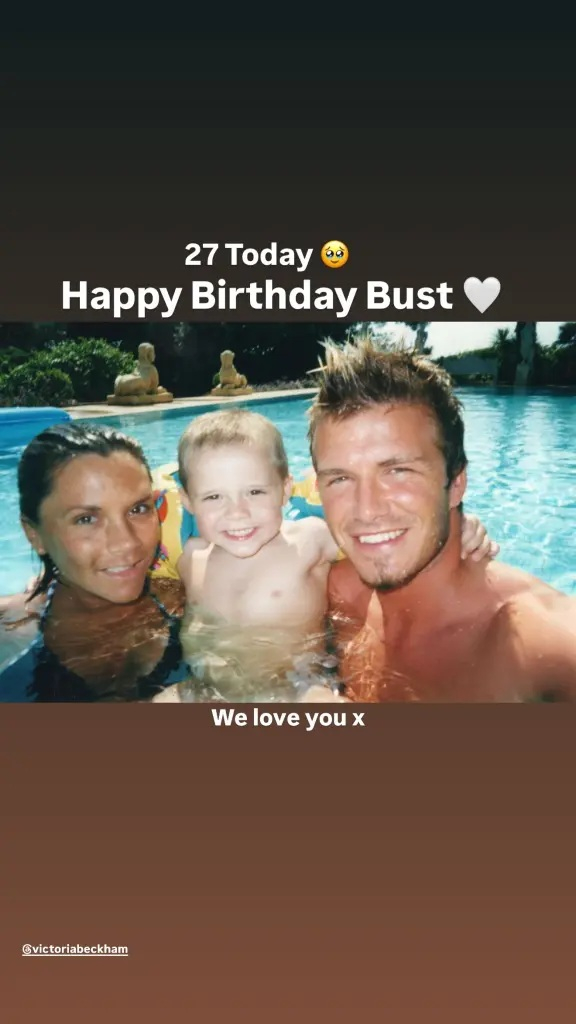 Victoria Beckham również podzieliła się archiwalną fotografią z Brooklynem jako niemowlęciem, dodając: „Wszystkiego najlepszego Brooklyn. Bardzo cię kochamy”.