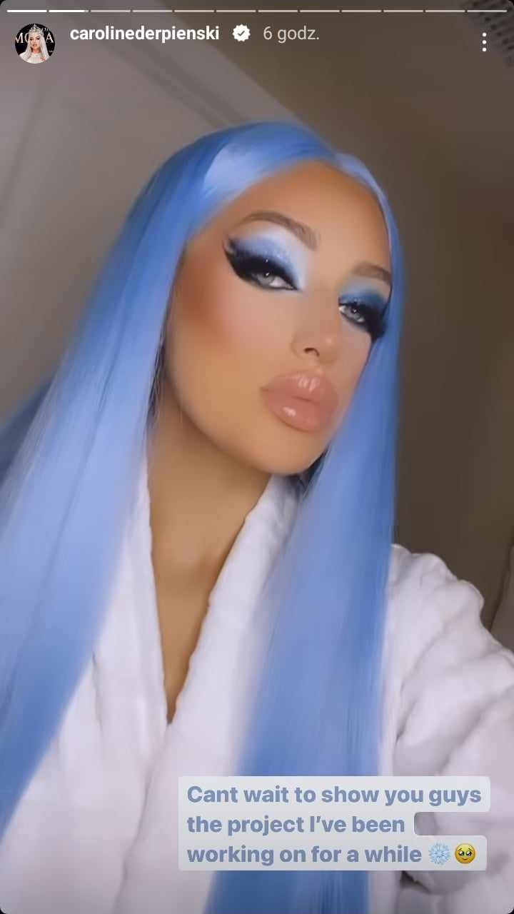 Nowymi wieściami Derpienski podzieliła się, prezentując przy tym odmienione oblicze. Swoje charakterystyczne blond włosy zakryła niebieską peruką. Na jej twarzy pojawił się dopasowany kolorystycznie makijaż. W kolejnej relacji celebrytka – z pewnością ku zaskoczeniu wielu – pokazała się zupełnie nago. Jak zdradziła, to kulisy kampanii reklamowej jej „produktu”.