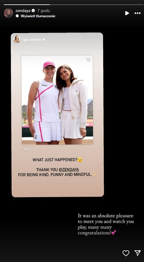 Na Instagramie Świątek oficjalnie podziękowała aktorce za spotkanie, a ta również opublikowała kilka słów od siebie:
