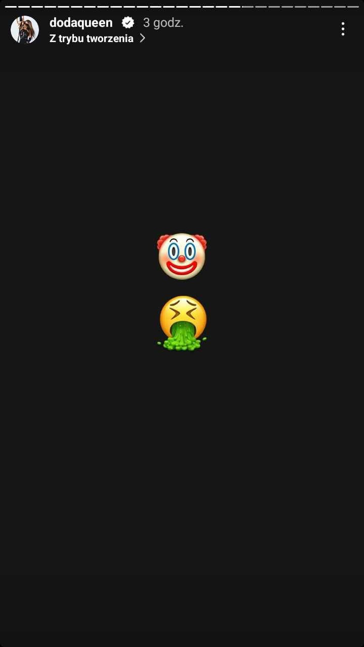 Niedługo później zamieściła też na Instagramie nagrania z utworem „Mój jest ten kawałek podłogi”, do którego nawiązała we wcześniejszej wypowiedzi. To jednak nie koniec. Wkrótce na jej instagramowym profilu ukazała się zagadkowa relacja z emotikonami przedstawiającymi klauna oraz wymioty. Intrygujące jest również to, co piosenkarka powiedziała podczas wizyty w studiu nagraniowym. Ją również zrelacjonowała w sieci.