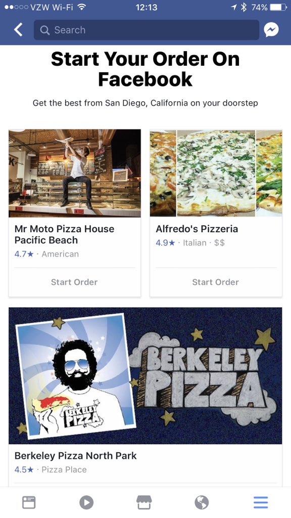 Użytkownicy Facebooka w Stanach Zjednoczonych mogą już skorzystać z nowej opcji, której wprowadzenie Mark Zuckerberg zapowiadał już od dłuższego czasu. Kiedyś portal miał służyć do kontaktowania się ze znajomymi, teraz rozwija się w coraz to nowszych kierunkach. Amerykanie mogą już bez odchodzenia od komputera zamówić posiłek z dostawą do domu za pośrednictwem Facebooka, klikając na nowo dodaną ikonkę z hamburgerem.