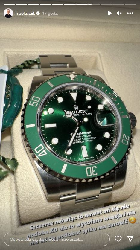 Leci do sejfu i go tam trzymam. Nigdy go nie założę na rękę [...]. To jest typowo pod inwestycję [...]. To jest zegarek, który ma wszystkie naklejki. Nigdy nie był noszony, jest w 100% nowy i taki musi zostać, żeby go kiedyś sprzedać drożej