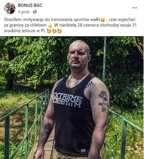 O rzuceniu sportów walki dowiedzieliśmy się z postu Bonusa, w którym wyznał, że stracił motywację. Z pewnością zaszokował tym swoich fanów równie mocno, co informacją, że planuje wyjechać z kraju "za chlebem".