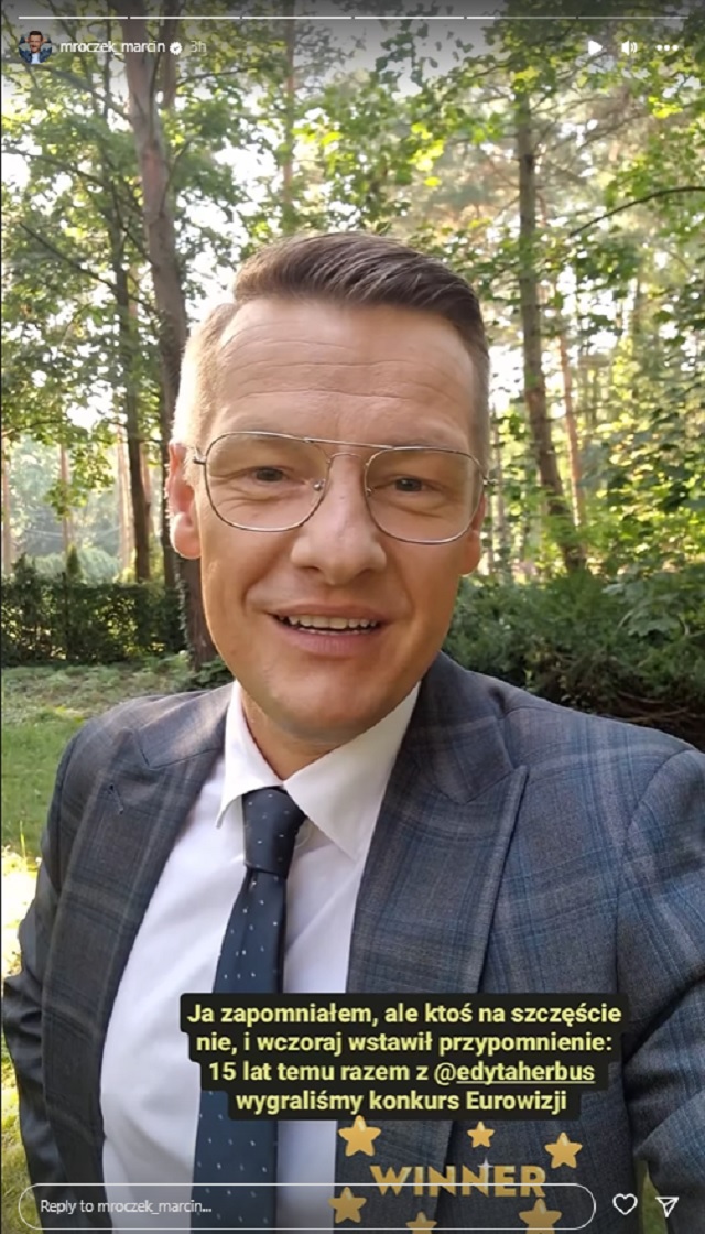 Marcin Mroczek to nie tylko zdolny aktor, ale też… tancerz! Swoimi umiejętnościami mógł pochwalić się m.in. w programie: „Taniec z Gwiazdami”. Wówczas partnerowała mu Edyta Herbuś, a następnie serialowy Piotr z „M jak miłość” rozwinął tę znajomość. Wspomniany duet reprezentował Polskę w 2. Konkursie Tańca Eurowizji w Glasgow. Zajął pierwsze miejsce! Niedawno od tego wydarzenia minęło 15 lat. Z tej okazji Mroczek postanowił powrócić pamięcią do tych chwil, dzieląc się swoimi przemyśleniami na Instagramie.