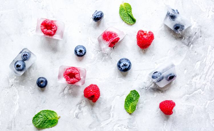 Na spożycie mrożonych owoców nie musimy czekać do zimy. Pomogą nam się ochłodzić w upalne dni – np. musem z mrożonych truskawek możemy ozdobić ciasta i desery. Świetnie sprawdzą się też owocowe kostki lodu – dzięki nim z łatwością stworzysz wyborne lemoniady, koktajle czy mrożoną herbatę. Żeby je przygotować, potrzebujesz silikonowych foremek na kostki lodu. Wystarczy, że na ich dnie ułożysz listki mięty oraz kilka drobnych owoców, na przykład malinę, borówkę, agrest czy porzeczkę, a następnie zalejesz je przegotowaną, wystudzoną wodą i zamrozisz. Z powodzeniem możesz też mrozić grube plastry cytryny, pomarańczy lub grejpfruta. Wystarczy, że ułożysz je na płasko i nabijesz na długą wykałaczkę. Pomiędzy plastrami warto też umieścić listki mięty. Po zamrożeniu wystarczy całość umieścić w dzbanku z wodą i dodać kostki lodu. Efekt będzie zachwycający.