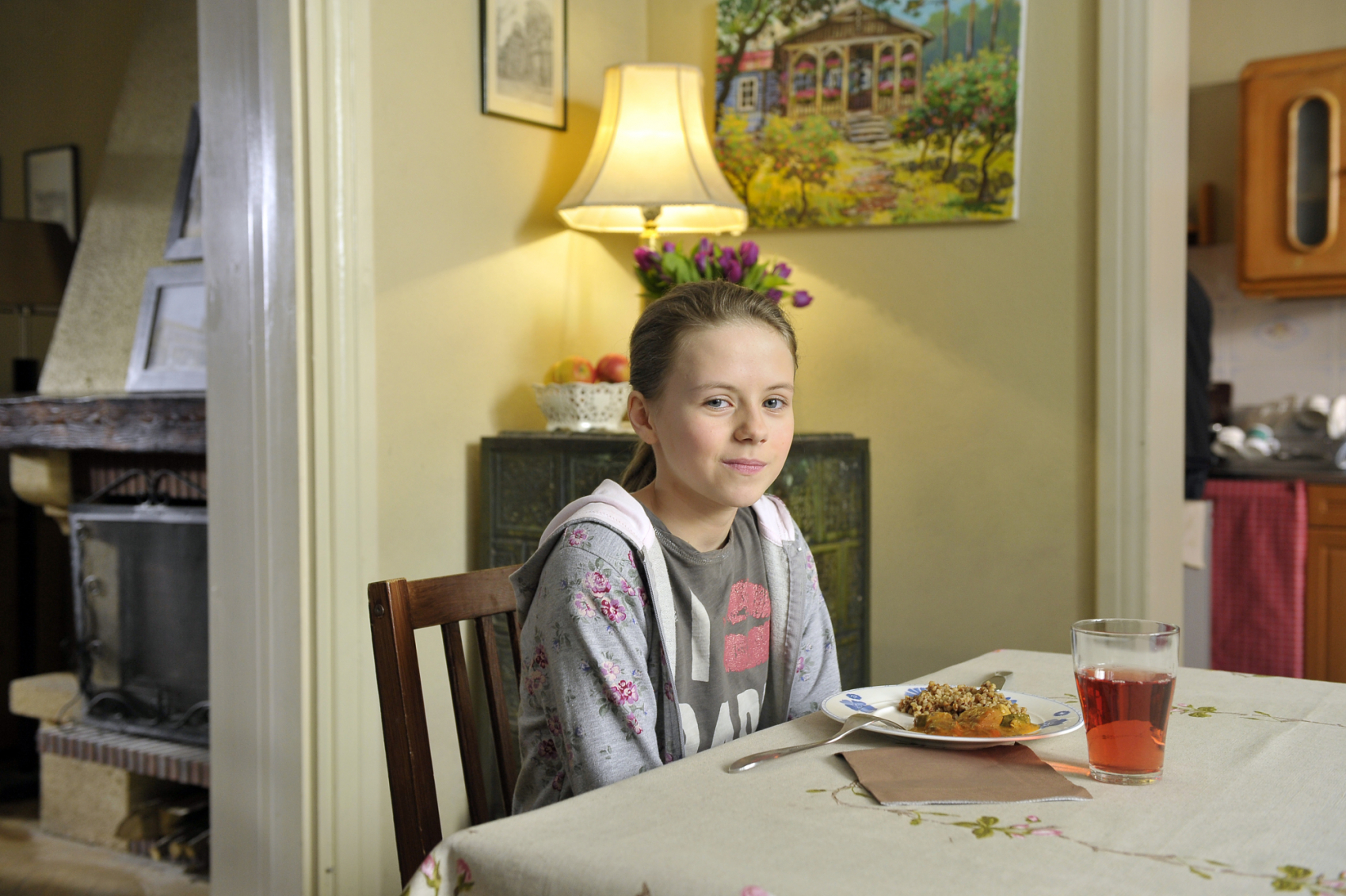 Emilka (Katarzyna Burakowska) na planie serialu "Ojciec Mateusz", 2013 r. Fot. AKPA