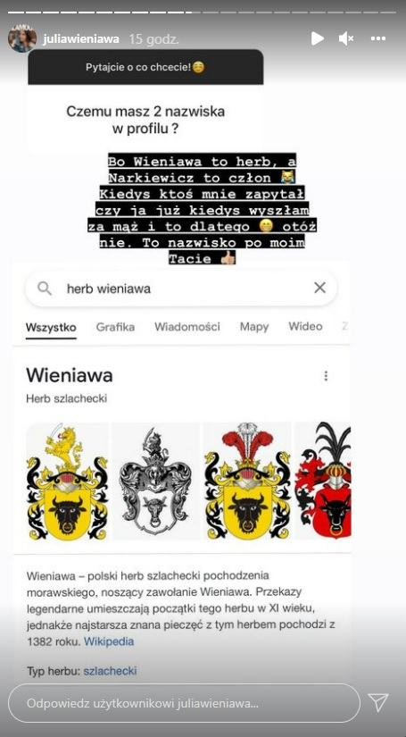 Jako uzupełnienie piękna aktorka opublikowała także garść informacji na temat wspomnianego herbu.
