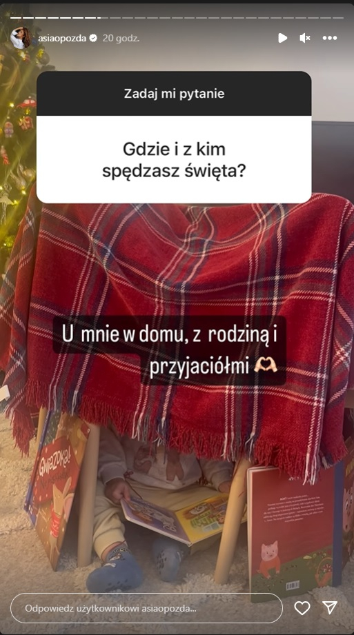 Teraz podobne pytanie trafiło do Joanny Opozdy. Internauci w Q&A zapytali, z kim spędzi Boże Narodzenie. Jednak i tym razem odpowiedź jest dosyć ogólna.