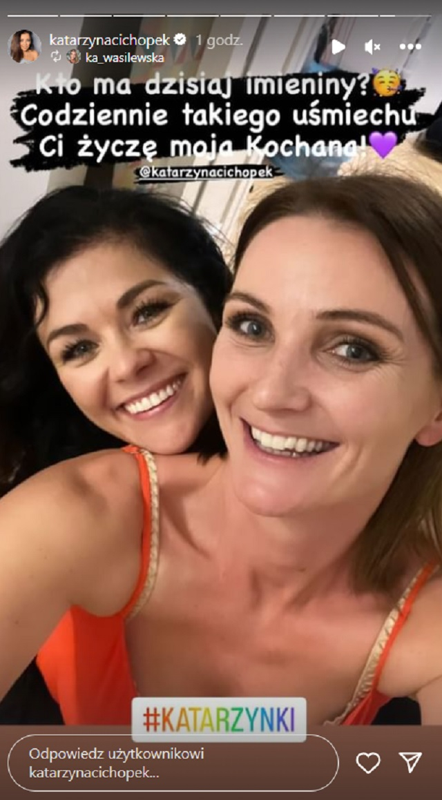 Bratowa Katarzyny Cichopek – Karolina Wasilewska-Cichopek – na jednej z instagramowych relacji pokazała zdjęcie z prowadzącą „Pytanie na śniadanie”. Obie panie z uśmiechami na twarzach pozowały do selfie. Kadr znalazł się również na instagramowym koncie odtwórczyni roli Kingi Zduńskiej w „Mjm”.