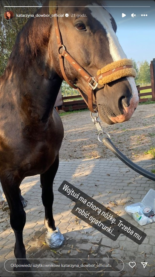 Na swoim Insta Stories podzieliła się jednak smutną informacją. Jeden z jej podopiecznych, adoptowany koń Wojtuś, ma problemy zdrowotne. Dziennikarka opublikowała jego zdjęcie, na którym widać, że zwierzę ma opatrunek na nodze.