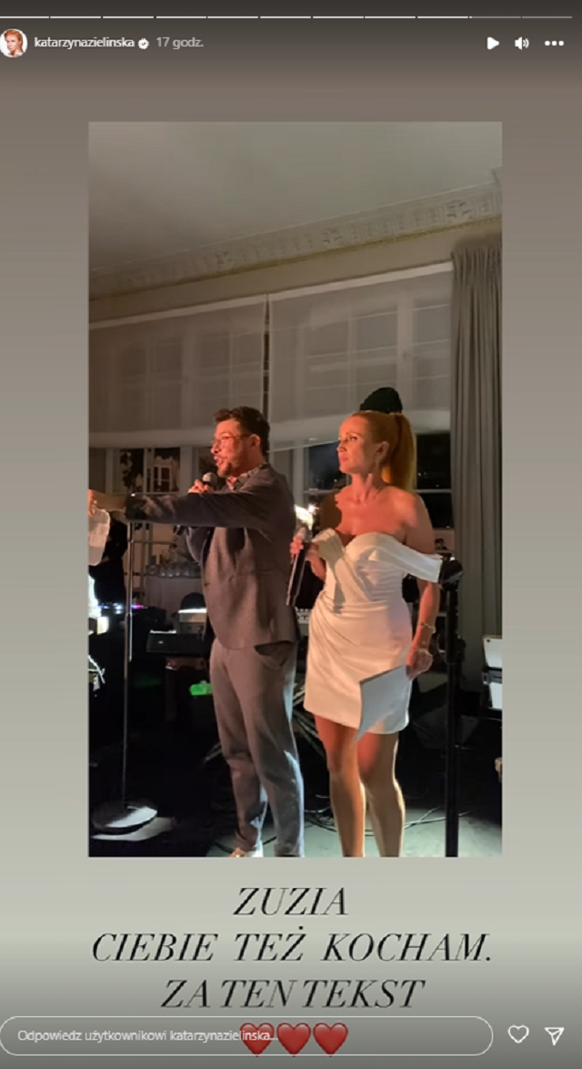 Katarzyna Zielińska w jednej z instagramowych relacji zdradziła, że ksiądz, który odprawiał mszę z odnowieniem przysięgi małżeńskiej, dekadę temu udzielał ślubu aktorce i jej partnerowi.