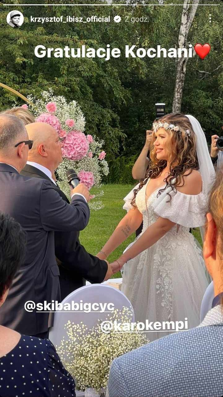 Ibisz nie był jedyną znaną osobą zaproszoną przez Skibę i Kempińską na ślub. Na hucznym weselu bawił się z nimi również m.in. Michał Milowicz. Zobaczcie, jak Krzysztof i Karolina wyglądali w tym wyjątkowym dla nich dniu.