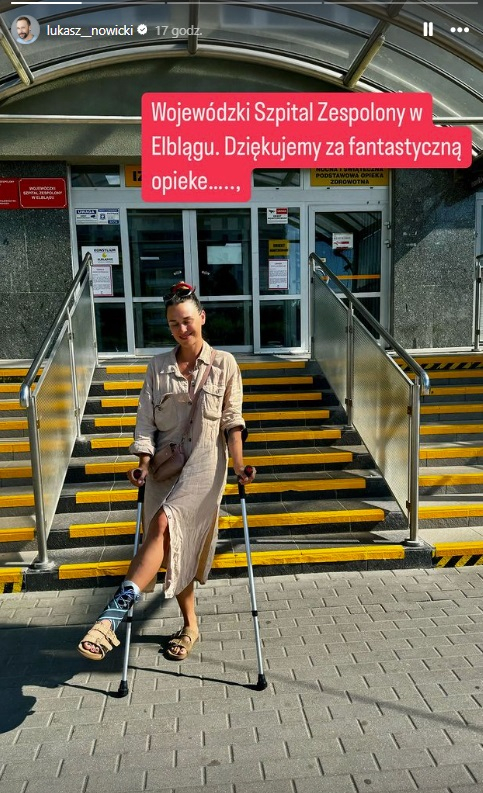 Okazało się, że w czasie wyjazdu Olga Nowicka trafiła do szpitala. Dlaczego i w jakim jest stanie? Na zdjęciu zamieszonym przez aktora widać, że jego ukochana ma założony stabilizator na staw skokowy i opiera się na kulach. Mimo wszystko na jej twarzy rysuje się promienny uśmiech. Przy okazji 51-latek podziękował personelowi placówki za „fantastyczną opiekę”.