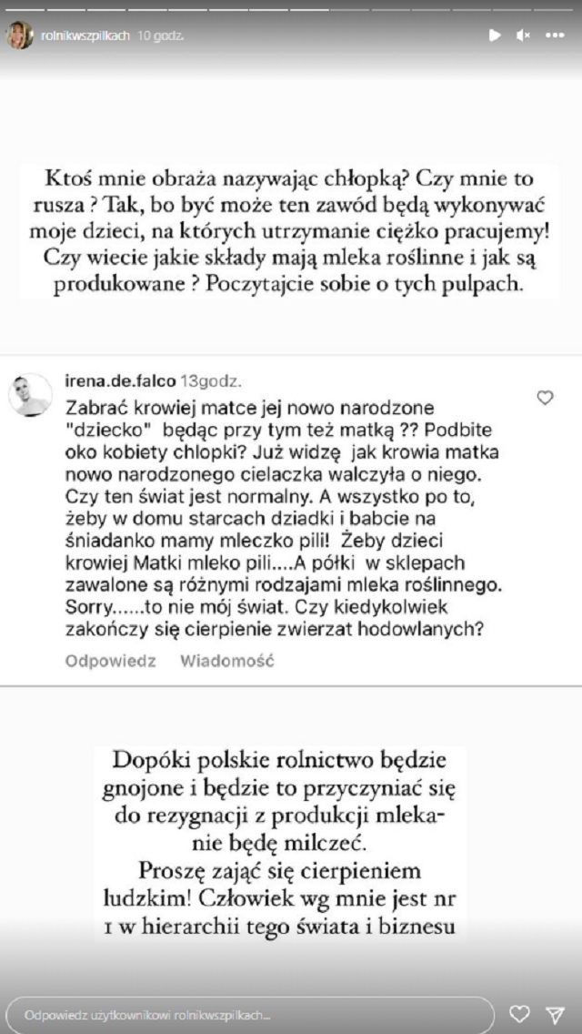 Małgorzata Borysewicz wrzuciła na InstaStory migawki przedstawiające krytyczną wypowiedź jednej z internautek. Użytkowniczka sieci niepochlebnie wypowiadała się o rolniczce, określając ją m.in. „chłopką”. Jak zareagowała „wywołana do tablicy” małżonka Pawła?