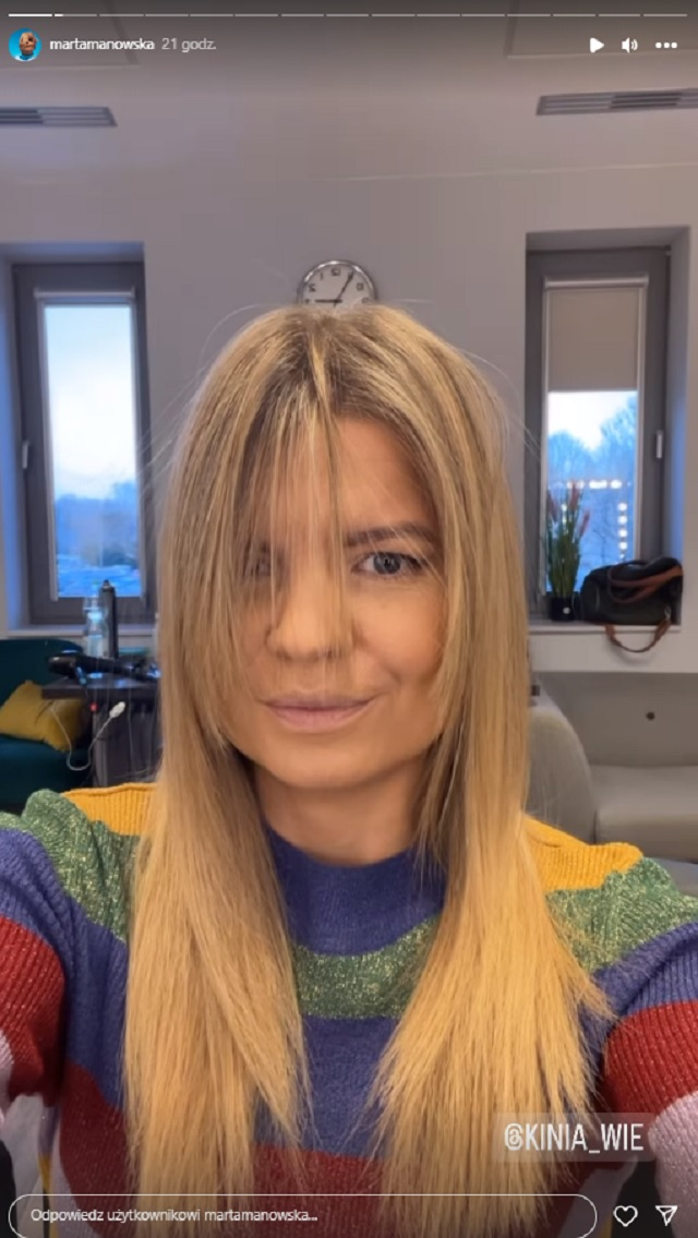 Gospodyni „Rolnika…”wraz z innymi prezenterami w ostatnim czasie wzięła udział w nagraniu świątecznego spotu dla kanału TVP Kobieta. Chociaż na efekt trzeba będzie jeszcze poczekać, to w sieci pojawiły się już fotografie ukazujące kulisy prac telewizyjnej ekipy. Także sama Manowska pochwaliła się kadrami prosto zza kulis, przy okazji pokazując się w nieco odmienionym wydaniu. Dziennikarka zaprezentowała bowiem „odświeżoną” fryzurę.