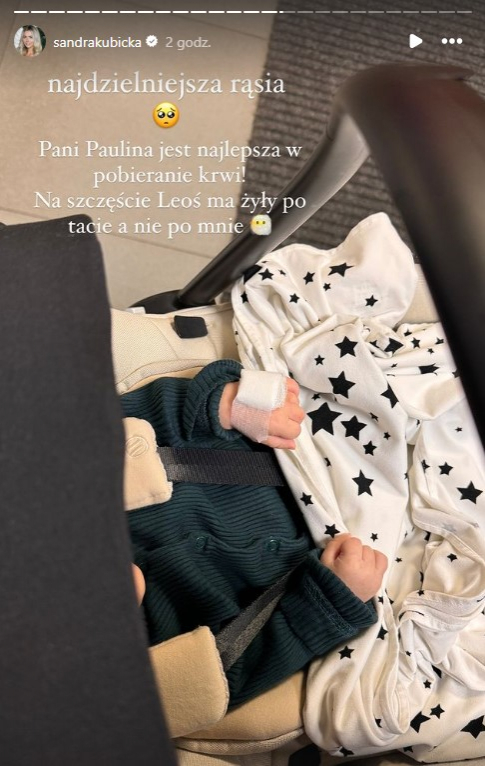 Tym razem to Sandra postanowiła podkreślić podobieństwo syna do ojca. Pierworodny Sandry i Aleksandra przyszedł na świat jako wcześniak. Świeżo upieczeni rodzice najedli się niemało strachu o zdrowie i życie maluszka. Od momentu przedwczesnych narodzin minęły już blisko trzy miesiące, w tym czasie Leoś rozwijał się prawidłowo, co było dla małżonków powodem do radości. Teraz „najmłodszy pacjent” zameldował się w klinice w celu wykonania badań kontrolnych: