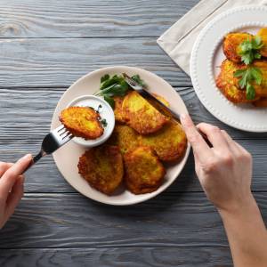 - Odsączenie placków na papierowym ręczniku po usmażeniu – pozbędziesz się nadmiaru tłuszczu.