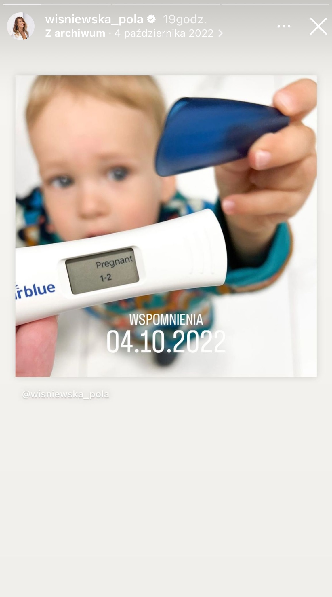 Pola Wiśniewska niedawno opublikowała na Instagramie pozytywny wynik testu ciążowego, który zaskoczył nie tylko obserwujących ją internautów, ale i jej męża. Choć mogłoby się wydawać, że ukochana Wiśniewskiego zaszła w kolejną ciążę, to nic bardziej mylnego. Celebrytka postanowiła bowiem przypomnieć fanom archiwalne zdjęcie sprzed roku, gdy wraz z Michałem ogłosiła, że spodziewa się kolejnego syna, który urodził się w maju tego roku.
