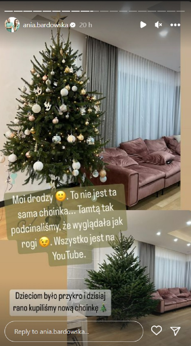 Jak się później okazało, słowa Bardowskiej znalazły odbicie w rzeczywistości; na kolejnych kadrach widać zniszczoną choinkę. Para podjęła próby ratowania drzewka, używając m.in. piły. Finalnie małżonkowie zdecydowali się jednak na inną wersję, o czym Ania Bardowska poinformowała w weekend na InstaStory.