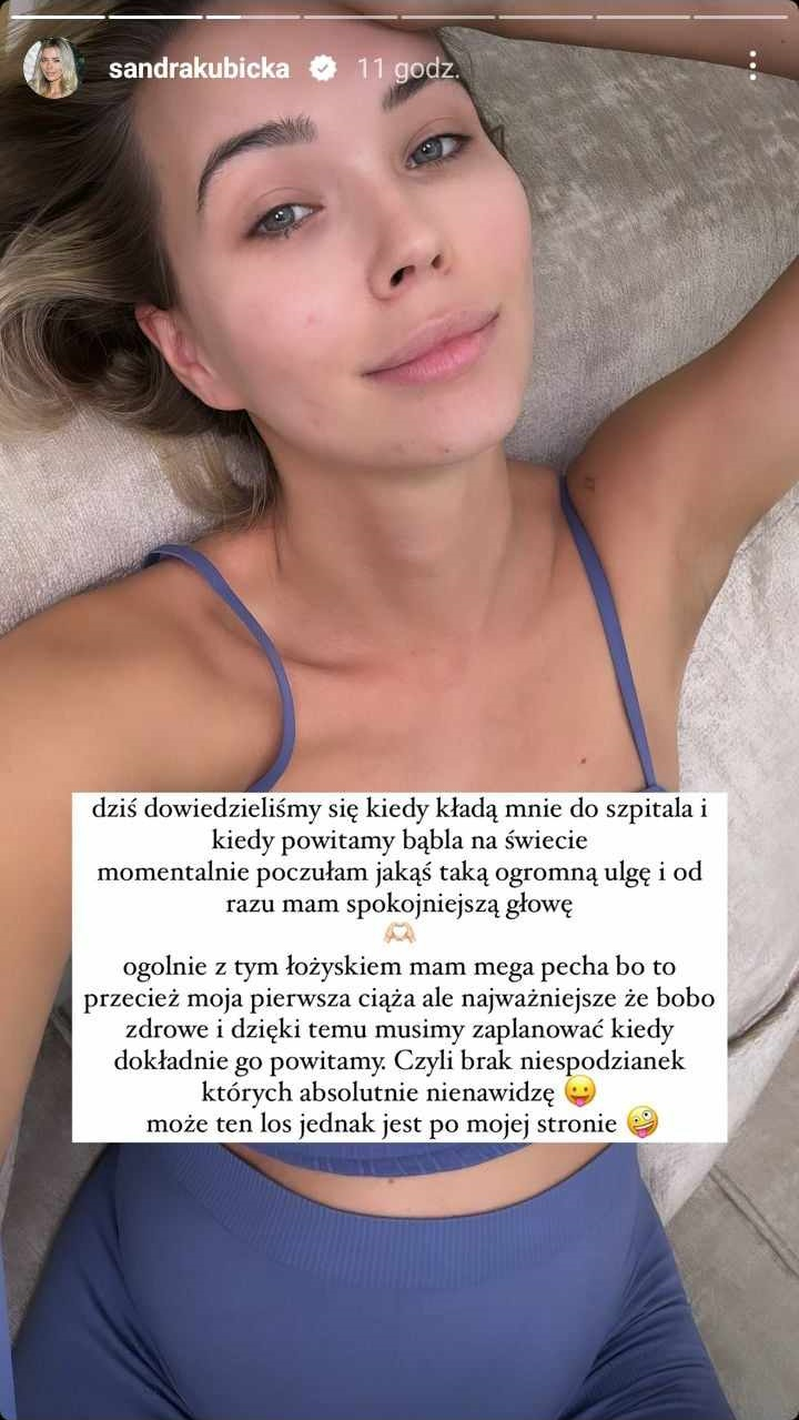 W kolejnym kafelku na Stories Sandra wyjaśniła, że decyzja o wcześniejszym przyjęciu do szpitala i cesarskim cięciu była konieczna dla bezpieczeństwa i jej, i dziecka.