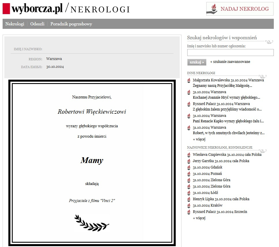 nekrologi.wyborcza.pl/ (dostęp: 30.10.2024)