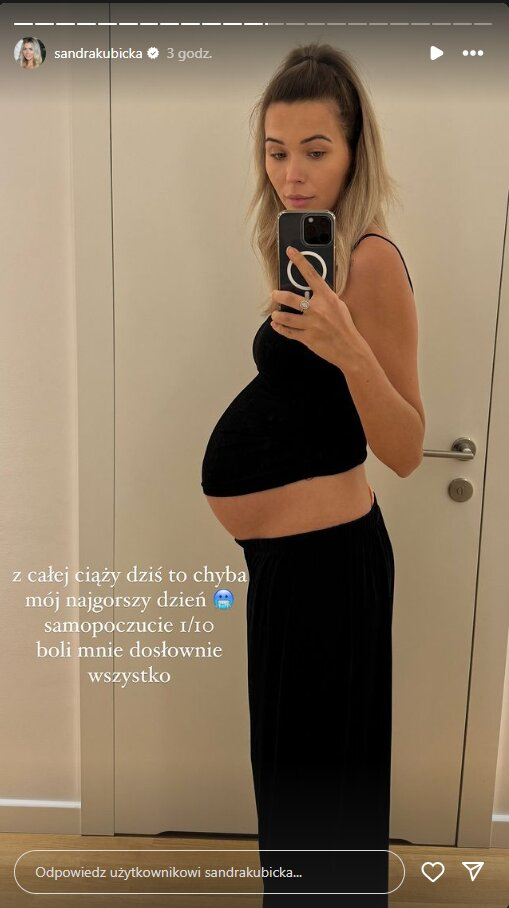 Z całej ciąży dziś to chyba mój najgorszy dzień. Samopoczucie 1/10. Boli mnie dosłownie wszystko – napisała.
