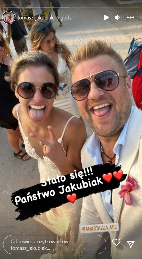 Tomasz Jakubiak sformalizował wreszcie związek ze swoją długoletnią partnerką. Z Anastazją Mierosławską od 2019 roku tworzy udany duet. Choć, jak przyznawał w jednym z wywiadów, ich początki były trudne, po dłuższym czasie wszystko się poukładało.