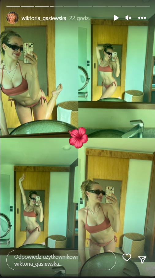 Znaczna część kadrów i filmików z wyjazdu aktorki pojawia się na InstaStories. Wśród z nich znalazły się też kadry w lustrzanym odbiciu. Wiktoria Gąsiewska zapozowała w modnym bikini. 23-latka pochwaliła się też swoją piękną figurą. Nie da się od niej oderwać wzroku - sylwetki może pozazdrościć jej niejedna modelka. Zobaczcie sami!
