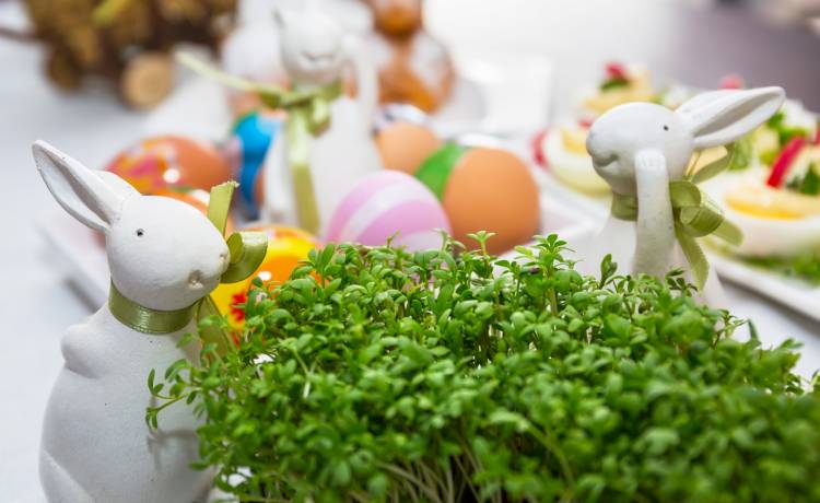 Jajka gotujemy na twardo, obieramy ze skorupki. Przekrawamy na pół i wydrążamy żółtka. Przekładamy je do miseczki, rozgniatamy, dodajemy majonez, posiekaną rzeżuchę, doprawiamy pieprzem i solą. Wszystko dokładnie mieszamy. Gotowym farszem wypełniamy połówki jajek. Dekorujemy rzeżuchą.