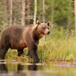 W kategorii „zwierzęta w naturalnym środowisku” uhonorowano nagrodą Thomasa Vijayana z Kanady. Zdjęcie przedstawia dorosłego orangutana, który w posągowej pozie stoi w płytkiej rzece, podpierając się drewnianym palem niczym kosturem.
