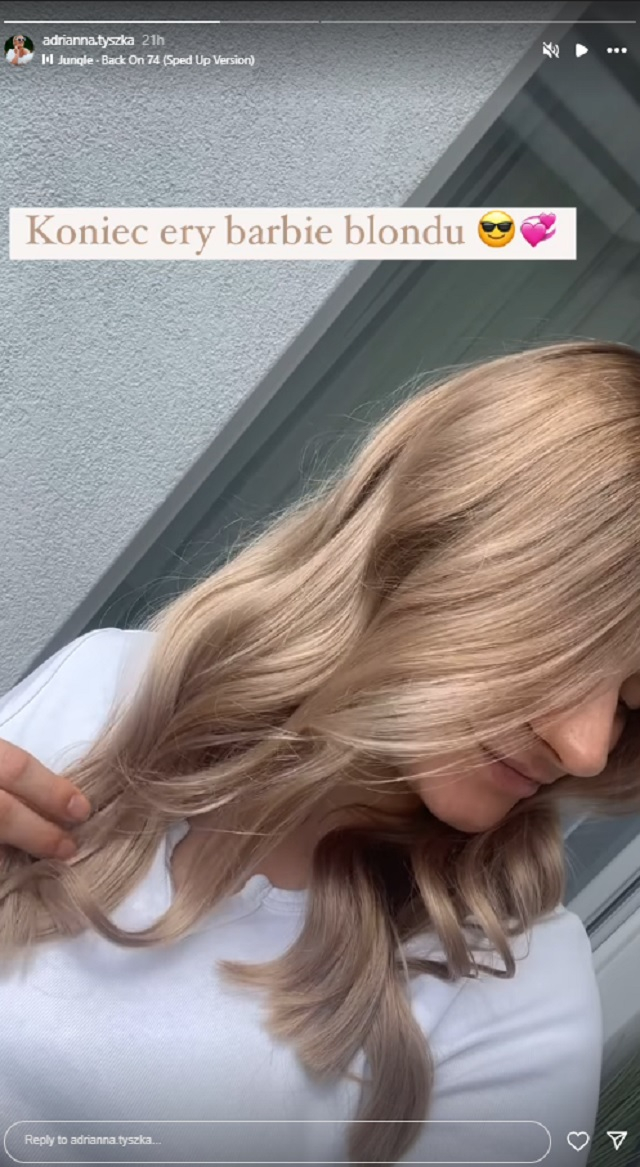 Ada i Michał wzięli udział w 9. edycji programu: „Rolnik szuka żony”. Ich relacja szybko nabrała tempa, a widzowie show trzymali kciuki za rozwój tej znajomości. Uczestnicy projektu wzięli ślub 16 lipca 2023 roku. Obecnie zakochani wiodą szczęśliwe życie, jednocześnie chroniąc prywatność. W ostatnim czasie żona rolnika nieco ograniczyła swoją aktywność w mediach społecznościowych. Wśród postów próżno szukać najnowszych kadrów, ale wcale nie oznacza to, że Adrianna z „RszŻ 9” „zaniedbała” internautów obserwujących jej profil na Instagramie. Tyszka właśnie pokazała na relacji krótkie nagranie wskazujące na zmianę w wyglądzie! Partnerka Michała postanowiła odświeżyć kolor włosów, decydując się na nieco ciemniejszy odcień. Do tej pory Adrianna Tyszka była wierna kosmykom w kolorze blond.