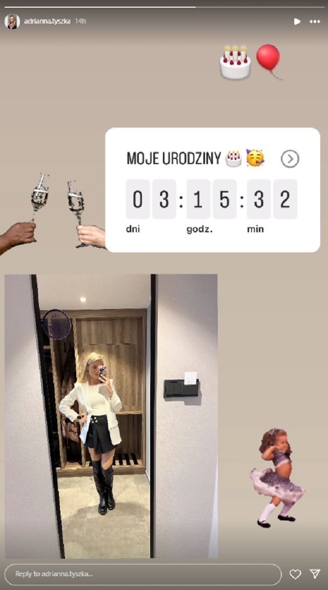 Adrianna z „RszŻ 9” wyjawiła, że za kilka dni będzie obchodzić urodziny. Żona Michała wprawdzie nie zdradziła, jak zamierza spędzić ten czas, ale – sądząc po dodanych emotkach przedstawiających: kieliszki, balon oraz tort – znajdzie chwilę na celebrację!