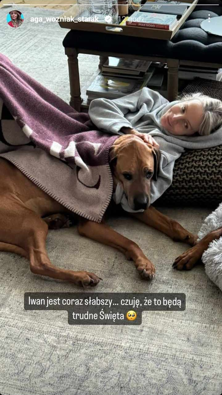 Kiedy wydawało się, że gwieździe udało się wyjść na prostą i jest naprawdę szczęśliwa, spadł na nią bolesny cios. Tuż przed świętami znana z wielkiej miłości do zwierząt prezenterka zaczęła drżeć o jednego ze swoich pupili – psa imieniem Iwan. W ubiegłym roku Woźniak-Starak informowała, że u 12-letniego wówczas czworonoga pojawiło się podejrzenie nowotworu, w związku z czym pilnie przeprowadzono kastrację. Teraz przekazała, że „Iwan jest coraz słabszy”.