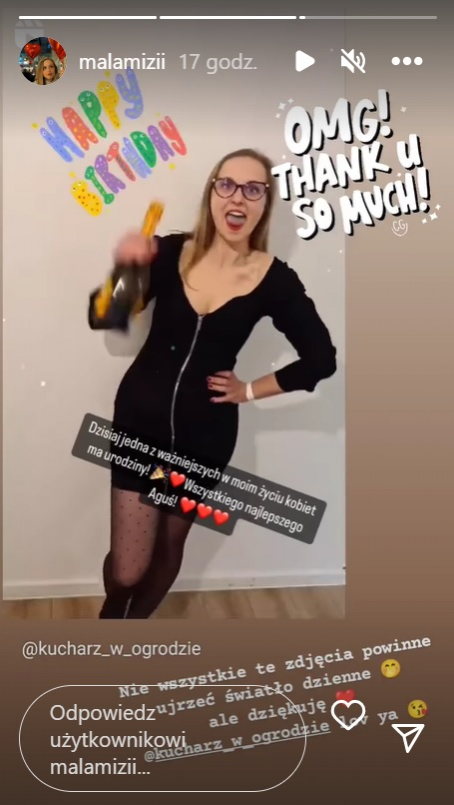 Odpowiedź Agnieszki pojawiła się bardzo szybko. Poza podziękowaniami pod postem, uczestniczka "ŚOPW" udostępniła na swoim profilu InstaStories z krótkim komentarzem.