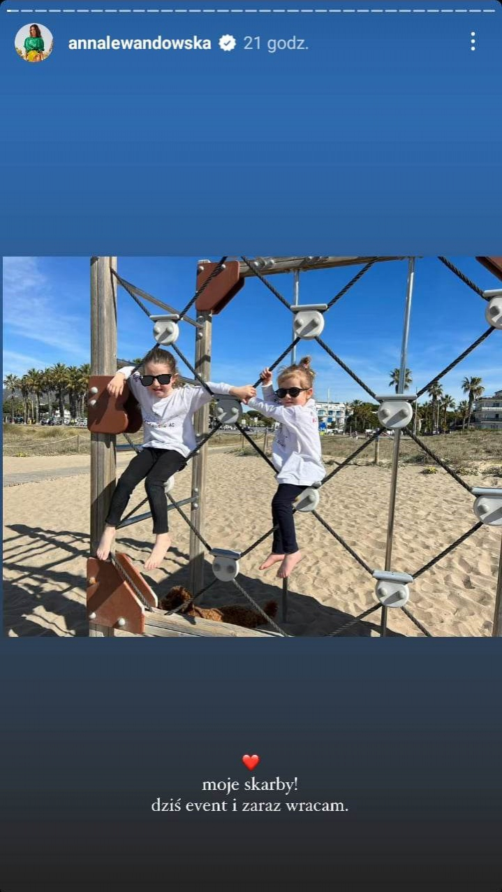 Jeszcze przed rozpoczęciem wydarzenia trenerka zdecydowała się udostępnić w sieci unikatowy kadr. Na zdjęciu, które zrobiła córkom podczas zabawy na plaży, ich buzie są widoczne w niemal w całej okazałości – przesłaniają je jedynie ciemne okulary. To rzadki widok na jej profilu.