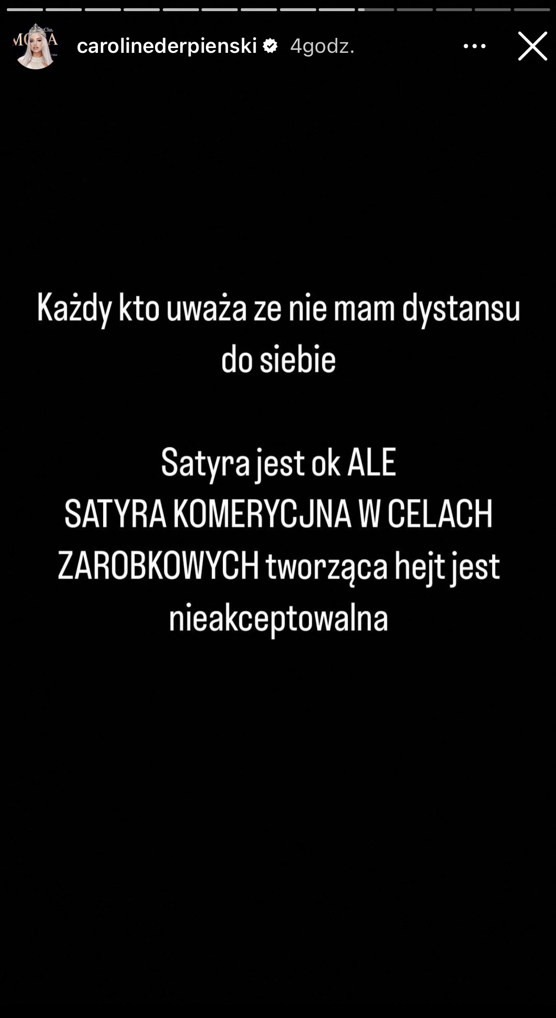 Każdy, kto uważa, że nie mam dystansu do siebie: satyra jest ok, ale satyra komercyjna w celach zarobkowych tworząca hejt jest nieakceptowalna