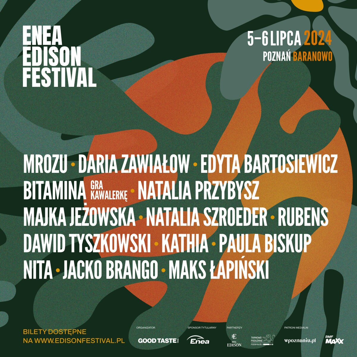 Do grona artystek i artystów, których będzie można posłuchać 5 i 6 lipca w Hotelu Edison w Baranowie właśnie dołączyli Majka Jeżowska, Bitamina z koncertową wersją materiału z płyty Kawalerka, Rubens, Paula Biskup, nita i Jacko Brango. Wcześniej organizatorzy potwierdzili koncerty m.in. Darii Zawiałow, Mroza i Edyty Bartosiewicz. Karnety i bilety jednodniowe są dostępne na www.edisonfestival.pl.