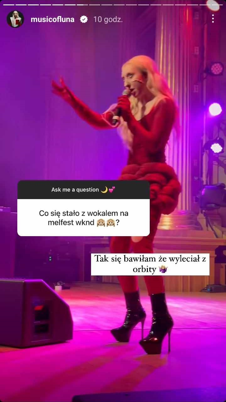 Temat wspomnianego występu powrócił podczas zorganizowanej przez Lunę na Instagramie sesji pytań i odpowiedzi, czyli tzw. Q&A. Jeden z obserwatorów piosenkarki postanowił zapytać wprost: