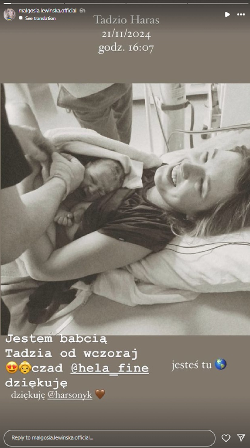 Małgorzata Lewińska zamieściła ujęcie przedstawiające jej córkę i wnuka: Tadeusza. 53-latka pochwaliła się radosną nowiną, pisząc: