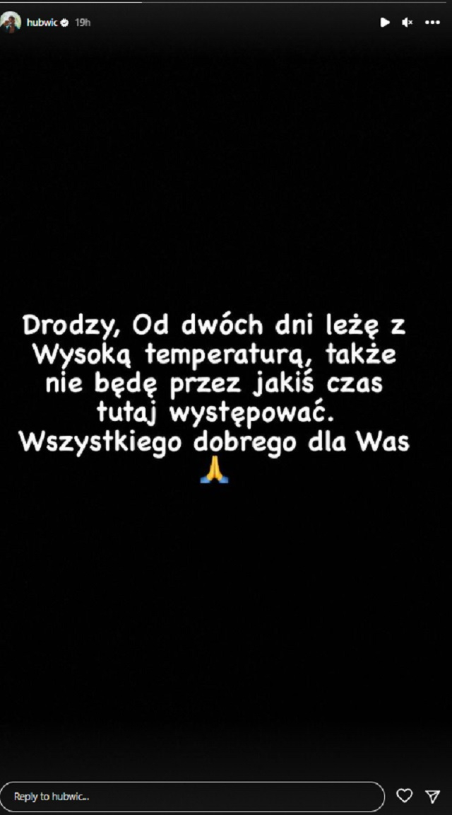 Hubert Wicher wykorzystuje Instagram do tego, by być w stałym kontakcie z internautami. Ci z kolei raz po raz wyrażają swoje zainteresowanie uczestnikiem show, często pytając go o związek z Agatą. Teraz głos zabrał sam mężczyzna, który wyjawił, że ma problemy zdrowotne: walczy z infekcją.