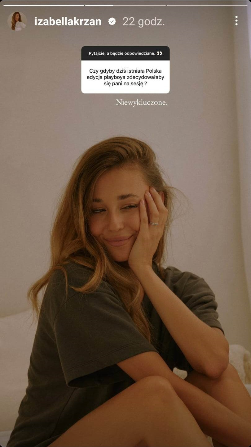 Wśród obserwatorów Izy Krzan na Instagramie nie brak nie tylko miłośników jej talentu i osobowości, ale i osób zafascynowanych urodą byłej Miss Polonia. Podczas ostatniego Q&A na Instagramie modelka otrzymała bezpośrednie pytanie o rozbieraną sesję. Nie miała problemu, by na nie odpowiedzieć. Do tego swoją odpowiedzią podgrzała atmosferę jak nigdy.