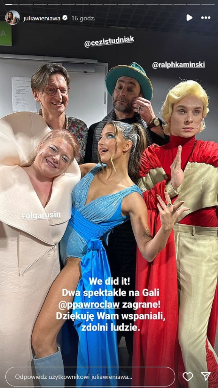 W weekend Julia Wieniawa uświetniała Przegląd Piosenki Aktorskiej we Wrocławiu. 25-latka jakiś czas temu zapowiadała na swoim profilu udział w tym projekcie, w którym towarzyszył jej między innymi Ralph Kaminski. Artyści wspólnie wystąpili w przedstawieniu "Człowiek z papieru. Antyopera na kredyt". Z relacji gwiazdy wynika, że show obfitowało w wiele atrakcji, takich jak latanie nad sceną na specjalnej uprzęży.