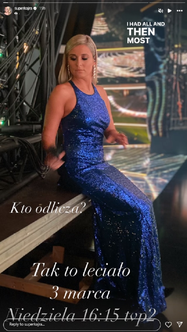 Magdalena „Kajra” Kajrowicz opublikowała ujęcie, do którego pozowała, będąc w długiej, niebieskiej sukni. Uwagę zwraca dopisek wskazujący na to, iż muzyczna para ponownie pokieruje „Tak to leciało”.