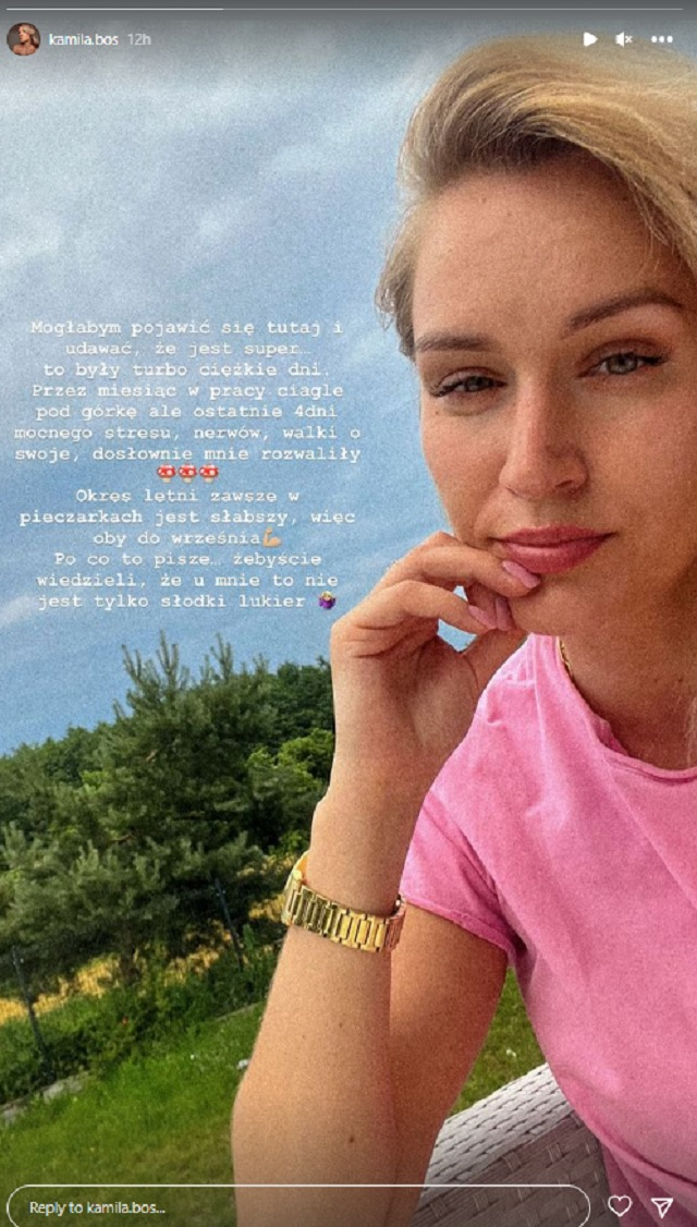 Chociaż „Rolnik…” nie przyniósł Kamili miłości, to spowodował, że stała się rozpoznawalna także w Internecie! Konto uczestniczki na Instagramie cieszy się sporą popularnością, a fani telewizyjnej produkcji chętnie sprawdzają, jak wygląda życie Kamili po programie. Ona sama dba o to, by być z użytkownikami sieci w stałym kontakcie, publikując sporo informacji na temat swojej codzienności. W ostatnim czasie Kamila nieco ograniczyła swoją aktywność, co zaniepokoiło jej obserwatorów. Boś postanowiła więc zabrać głos – w krótkim ogłoszeniu wyjaśniła, że ma za sobą trudne chwile…