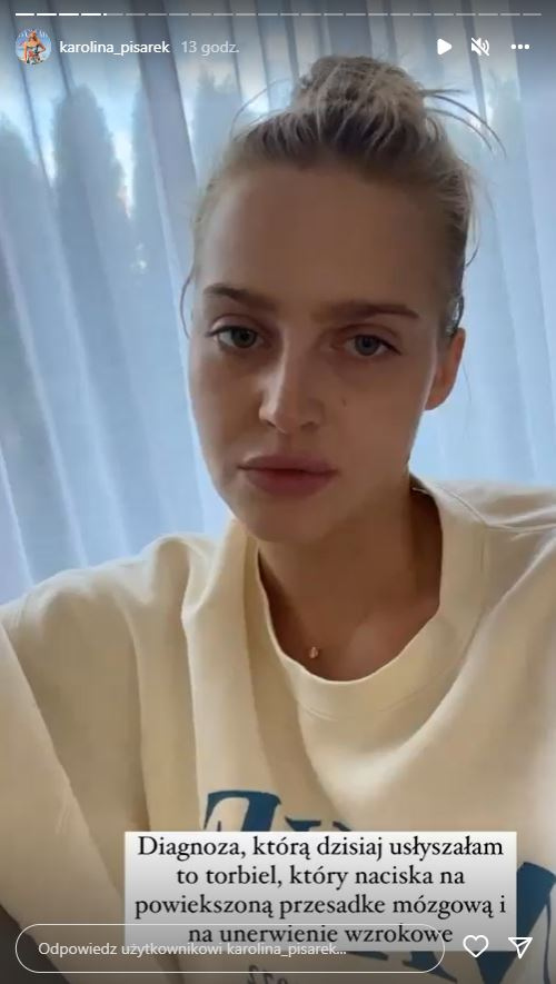 Karolina Pisarek-Salla na początku podziękowała fanom za ogromne wsparcie. 25-latka poinformowała, że przez ostatnie dni przeszła szereg badań i musiała przyjmować silne leki przeciwbólowe zmieszane ze sterydami. Modelka ujawniła, że wykryto u niej torbiel. Choć Karolina na ten moment nie musi przechodzić pilnej operacji, to lekarz zalecił jej przyjmowanie tabletek.