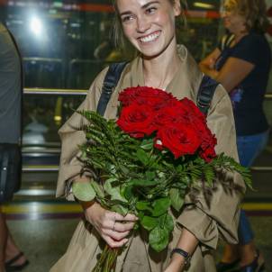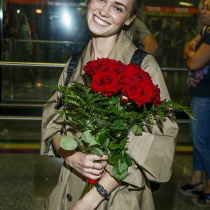 Katerina została powitana w Polsce przez tłumy fanów oraz przez przedstawicieli Telewizji Polskiej. Na warszawskim Okęciu obsypano ją kwiatami. Przez długi czas nie mogła wydostać się z lotniska, bez przerwy rozdając autografy. Kowalczuk nie przyleciała do Polski sama. Towarzyszył jej przysojny brunet, z którym trzymała się za rękę.