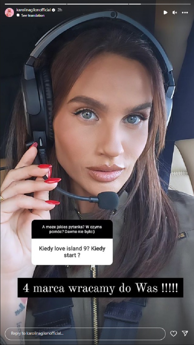 Czy będzie nowy sezon programu: „Love Island. Wyspa miłości”? Kiedy i gdzie będzie można oglądać odcinki? Jaka przyszłość czeka telewizyjny projekt z Karoliną Gilon w roli prowadzącej? Wprawdzie szczegóły dotyczące 9. edycji „LI” są pilnie strzeżone, ale do mediów trafiły już pewne „przecieki”. Wiadomo, że randkowy projekt powróci na „szklane ekrany” na wiosnę. Teraz Gilon uchyliła rąbka tajemnicy, podając dokładną datę! Wszystkie znaki na niebie i ziemi wskazują na to, że „Love Island” będzie emitowane od 4 marca. Wspomniała o tym sama gospodyni show, odpowiadając na jedno z pytań internautów.