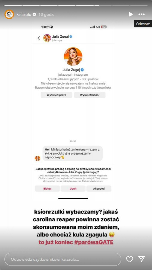 Kilka godzin po tym, jak influencerka została wywołana do odpowiedzi, skontaktowała się z Książulem. Julka przeprosiła go za całą sytuację i zapewniła, że miniatura na jej filmie już została zmieniona.