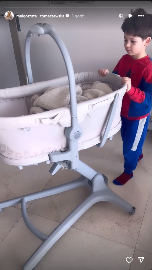 Doskonale widać, jak wyjątkowa więź połączyła dzieci. Enzo z czułością opiekuje się Laurą. Dziś na Stories ponownie pojawiło się rozczulające nagranie. Małgosia Tomaszewska uwieczniła na nim moment, kiedy syn lulał do snu noworodka.
